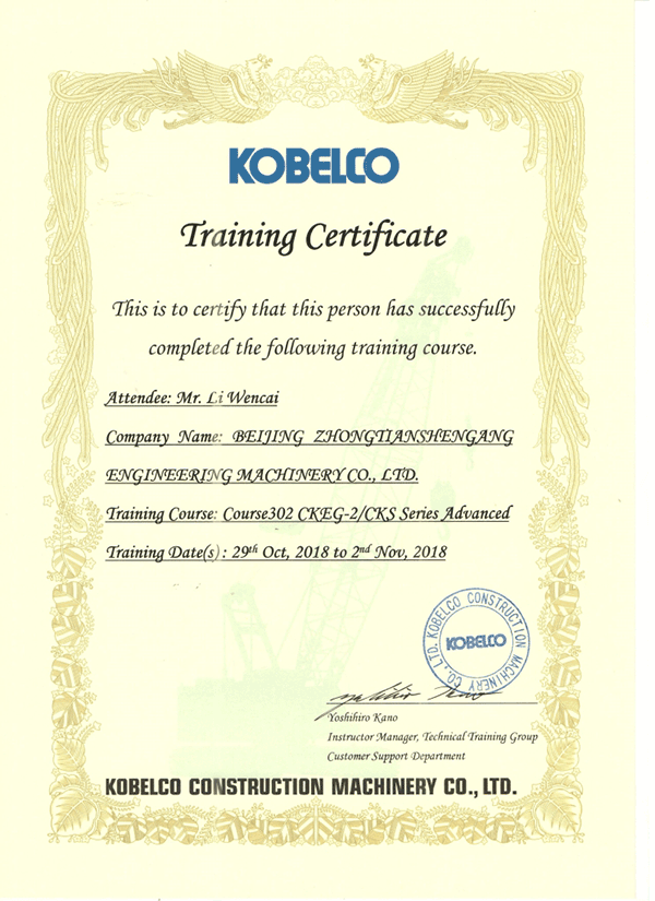 我公司的技術(shù)人員專業(yè)從事進口吊車的維修和服務工作多年,有著扎實的理論基礎(chǔ)和豐富的實踐經(jīng)驗,并多次與國外的技術(shù)管理人員合作,得到他們的充分肯定。我公司工程師均接受過日本神鋼建機株式會社的技術(shù)培訓高級課程,并以優(yōu)異成績獲得神鋼認證的工程師證書。